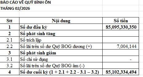 Báo cáo định kỳ Quỹ Bình ổn giá xăng dầu (BOG) - tháng 02/2026